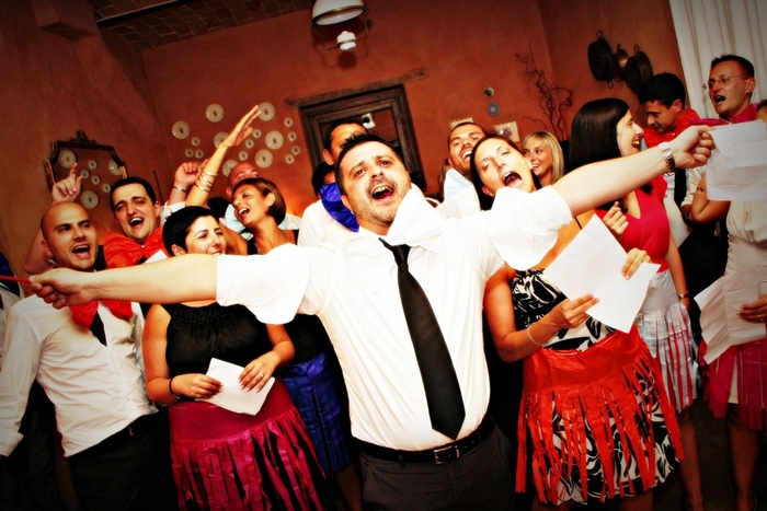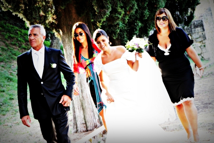 Esterni nel parco dell'abbazia e festa proseguita al ristorante Casale Marino di Collecorvino.